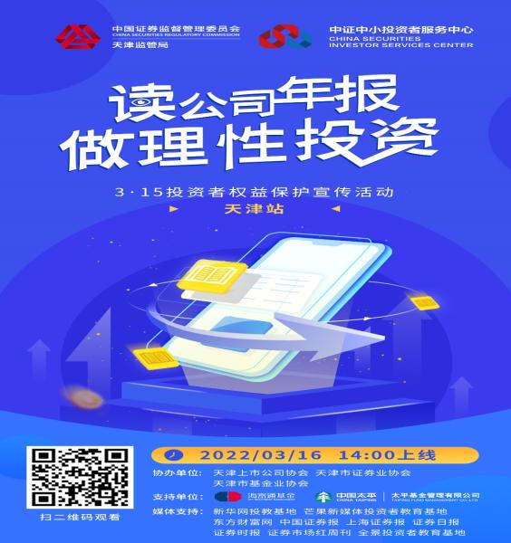 為(wei)貫徹(che)落實黨(dang)的十九屆六中(zhong)全(quan)會精神及中(zhong)國證監(jian)會全(quan)面推進注冊制(zhi)改革的工(gong)作部署,天津(jin)證監(jian)局聯合(he)中(zhong)證中(zhong)小投(tou)資(zi)者服務中(zhong)心(xin),以“3·15國際(ji)消費者權益(yi)保護日”為(wei)契(qi)機,共同舉辦此次“讀公司(si)年報、做理性投(tou)資(zi)”—3·15投(tou)資(zi)者權益(yi)保護系列宣(xuan)傳活動!